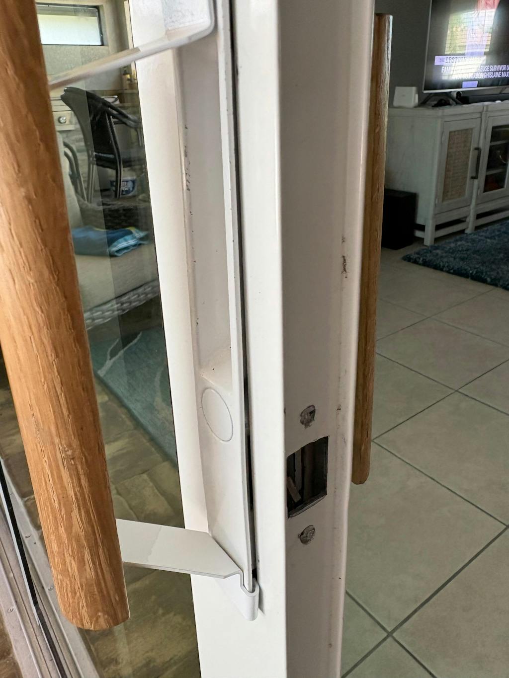 The concept was fantastic for a flush latch patio door. The outside handle was needed and installed fairly easy, thank you, the inside handle was a fail because when installed the wood handle relationship to the locking mechanism over directly over and blocked locking and unlocking door. The inside handle needed the center line of **** holes should have increase offset to the center of the wood handle by maybe 2 inches more